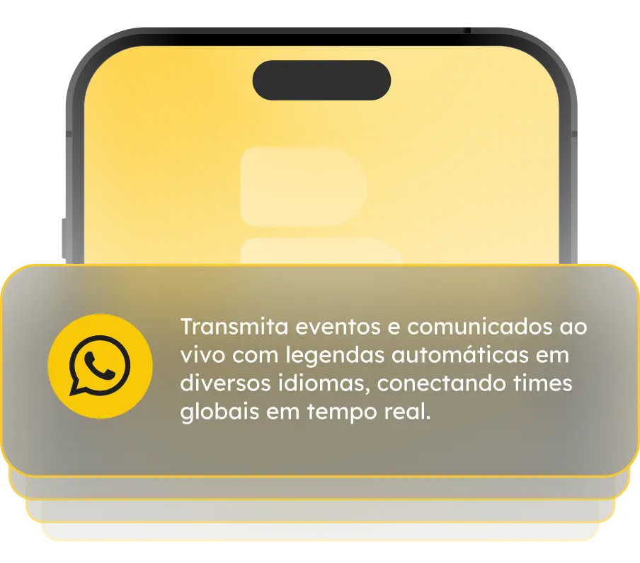 Com lives traduzidas automaticamente e canais que funcionam em qualquer idioma, sua empresa elimina barreiras geográficas e culturais. Todos os times, do Brasil ao exterior, recebem as mesmas mensagens, no mesmo momento, fortalecendo alinhamento e inclusão.