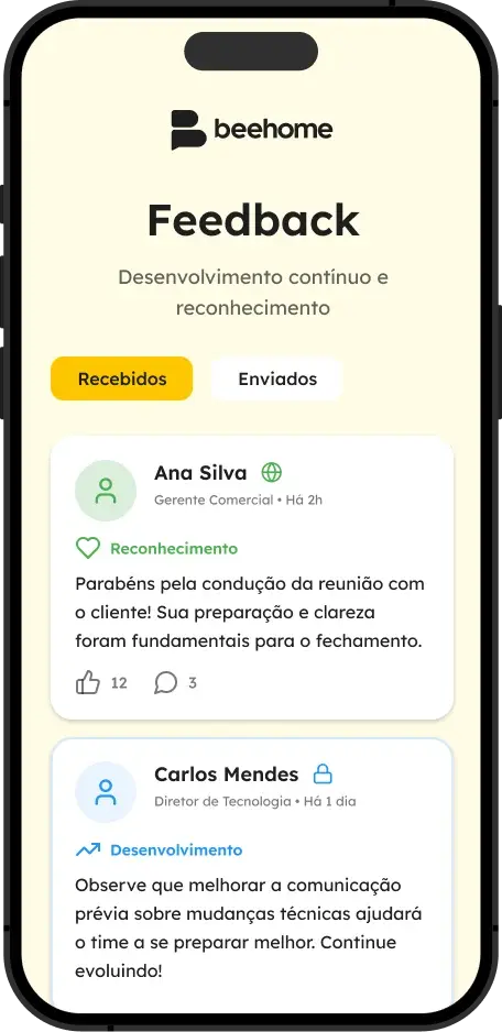 Fortaleça a cultura de desenvolvimento com um canal estruturado para feedbacks contínuos, elogios públicos e orientações privadas.