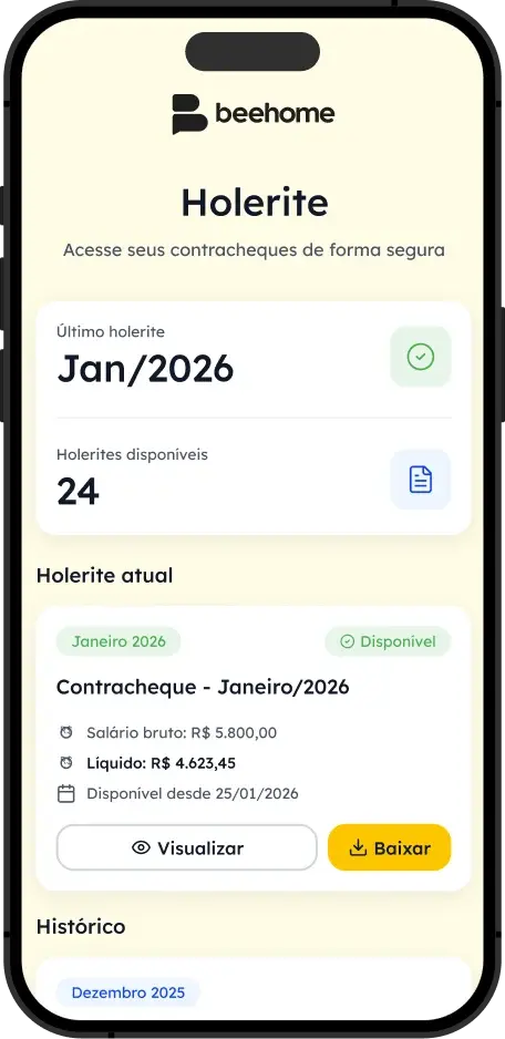 Disponibilize contracheques de forma segura no app, eliminando custos de impressão e distribuição manual.