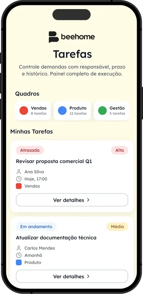 O Beehome Organiza é a solução que transforma processos dispersos em produtividade mensurável.