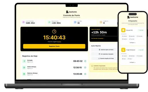 Gerencie e controle toda a jornada de trabalho de equipes presenciais e remotas com registros seguros pelo app de ponto digital ou portal da Beehome.